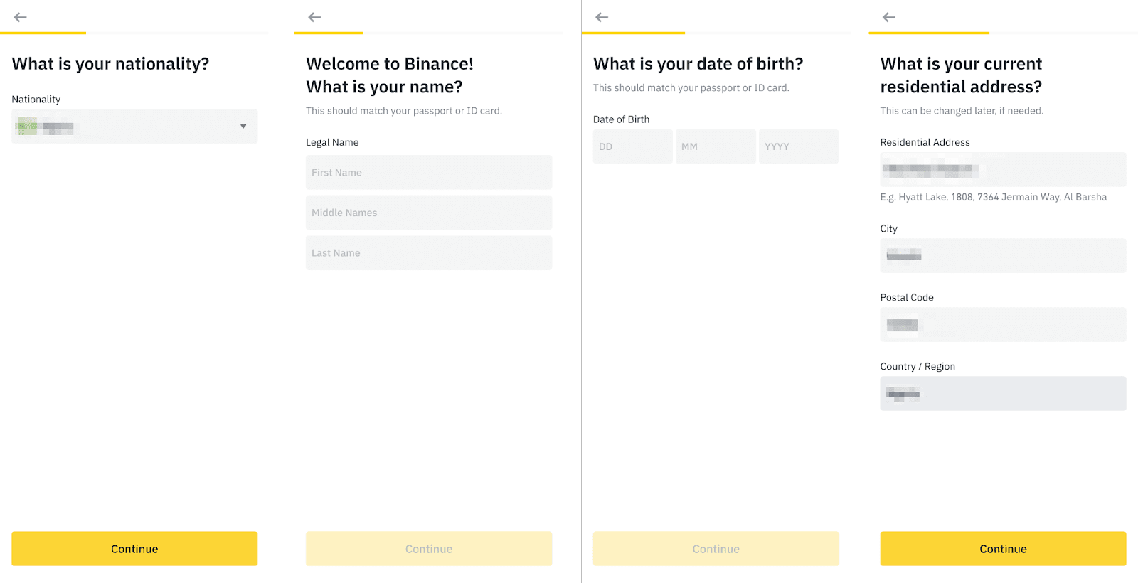 4. 选择您所在的国籍,根据指示输入您的身份信息和补充信息。请确保您输入的所有信息与您的身份证件一致。确认后,您将无法更改。